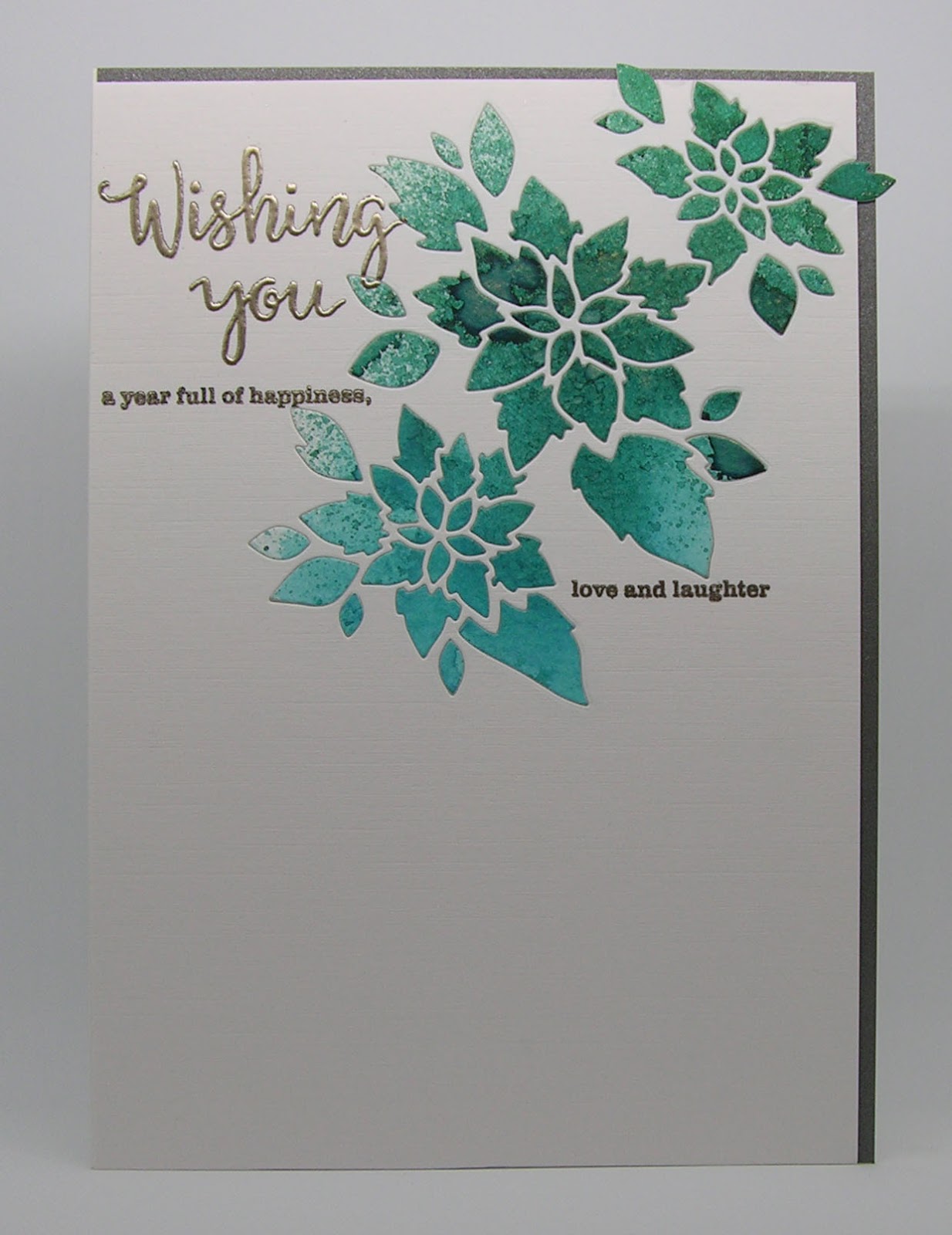 Your smooshed teal tones look stunning, Mac. Love your use of the poinsettia for a non-Christmas card and the platinum EP works brilliantly with these tones too.