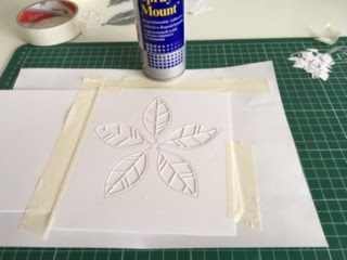 I cut out the line die leaf, sprayed with removable glue and popped them into the flower image.